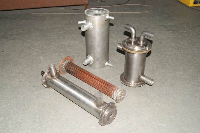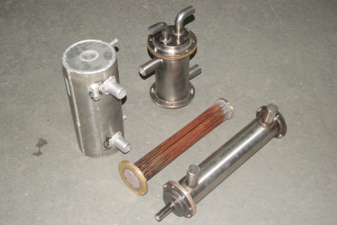 Казантип писал(а):Мы пока только такие пробовали делать. Тот что слева, самый большой, это от Жени Фусо продукт... показал для сравнения размеров. У нас в ввх, внутри, медная трубка диам 4мм и стенкой 0,5мм. ВВХ "толстый и короткий"- 0,46 кв.м площадь теплосъема, а у "тонкого и длинного" 0,48. Достаточно для мотора до 200 сил, думаю так.
