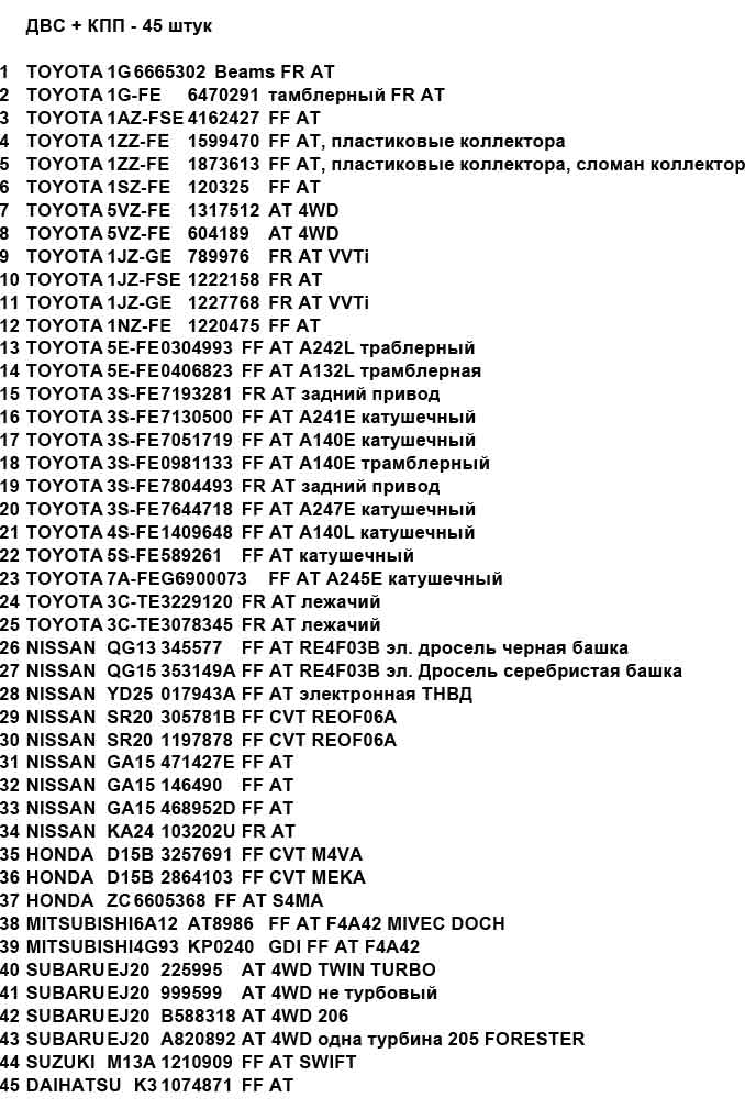 К нам на СТО в начале марта контейнер придёт - движки будут,если кому интересно что из списка ,дам координаты человека ,который продаёт ,отправит куда надо , могу сфотать, посмотреть состояние. Себе 3S-FE c HOAH возьму чтоб было чем зимой заняться.