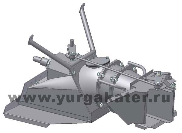 В зависимости от степени перекрытия струи рулевым пером происходит маневрирование катера или на заднем ходу.