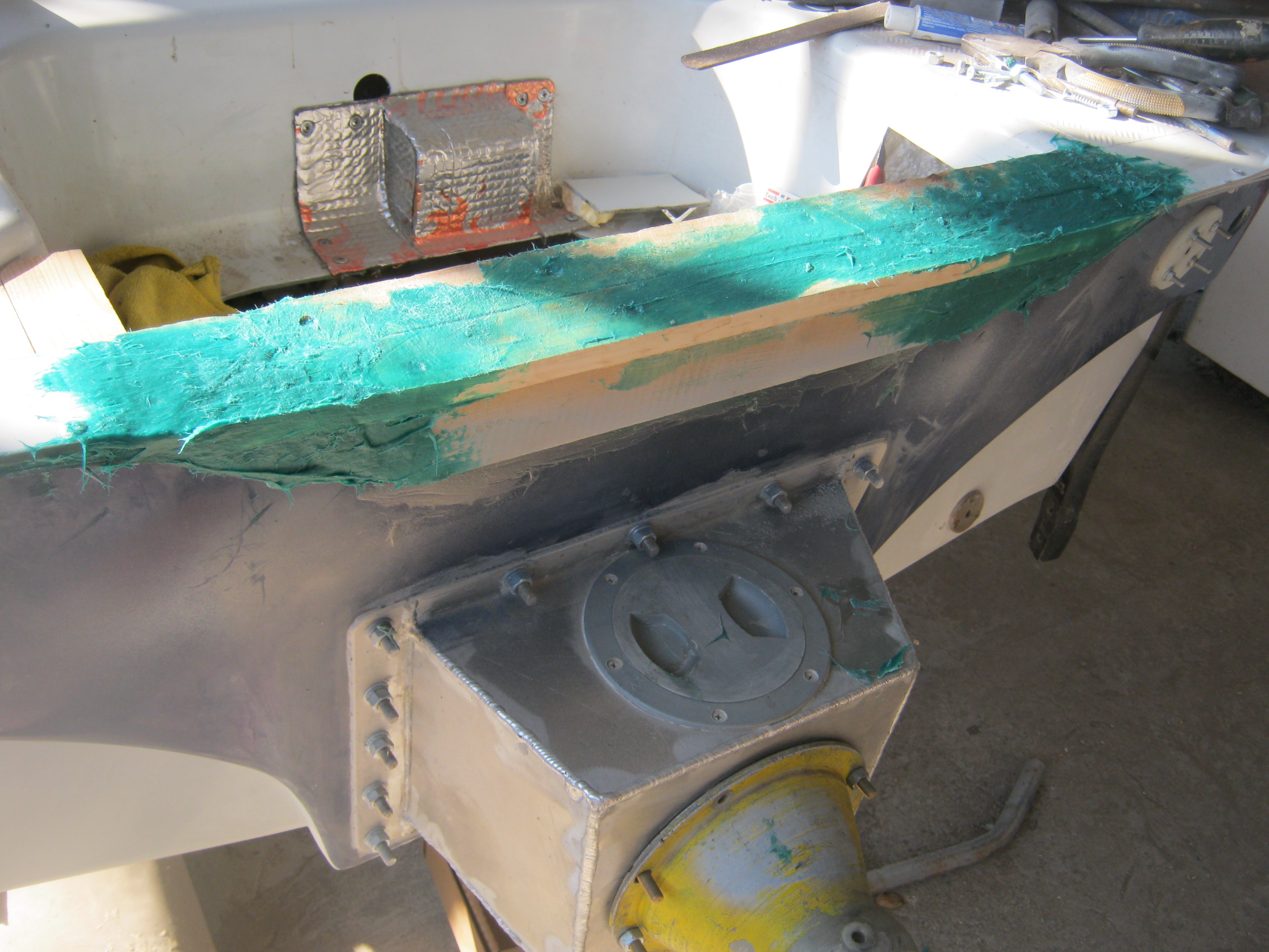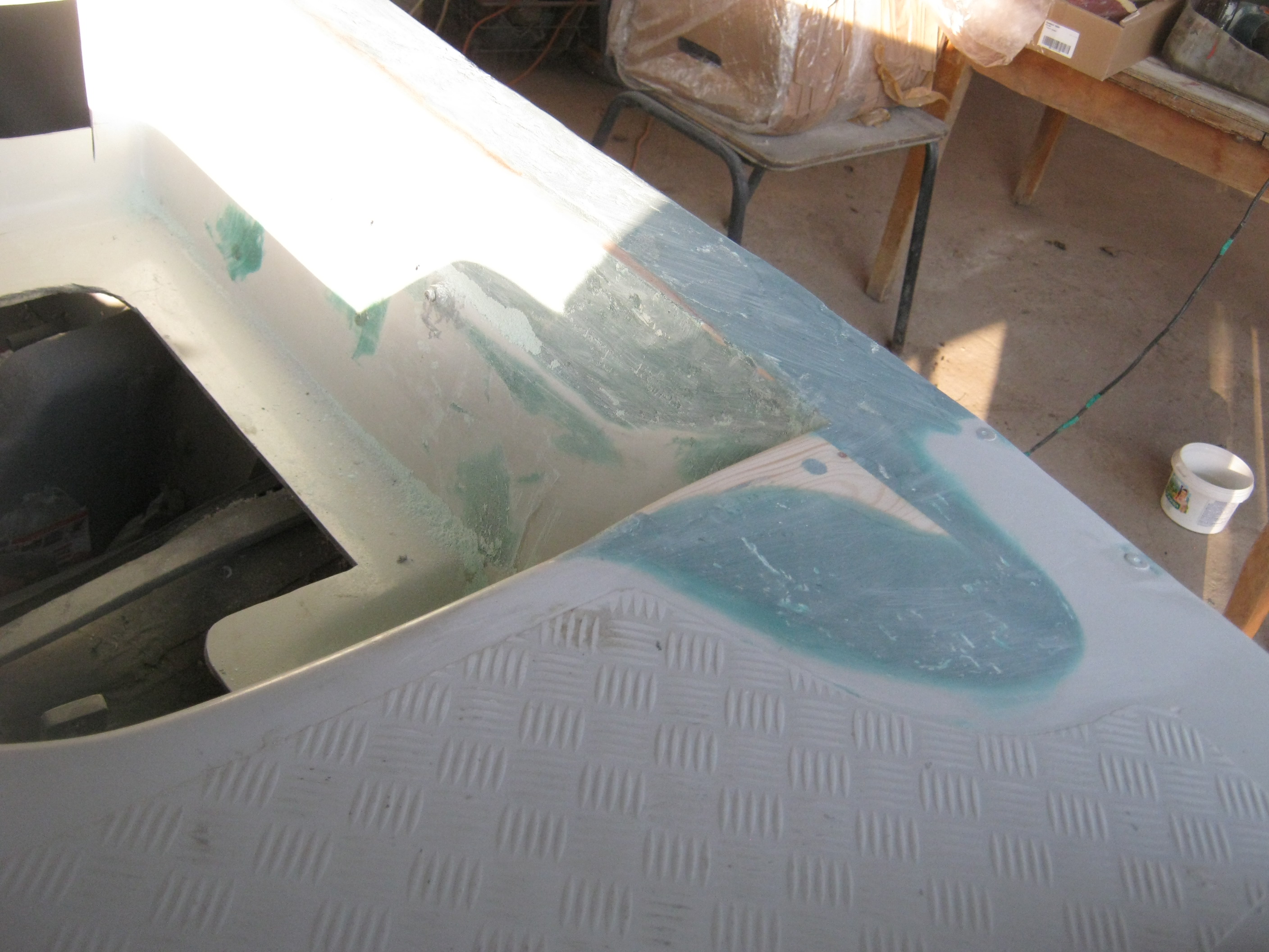 Сегодня, откуда-то -пришёл доход. Прикупил стекловолокнистой шпатлёвки -и приступил! Не, сначала покрасил первым слоем , 403 краской - Консоль. Поставил сушить и, потом -уже -приступил. К деревяшкам.
