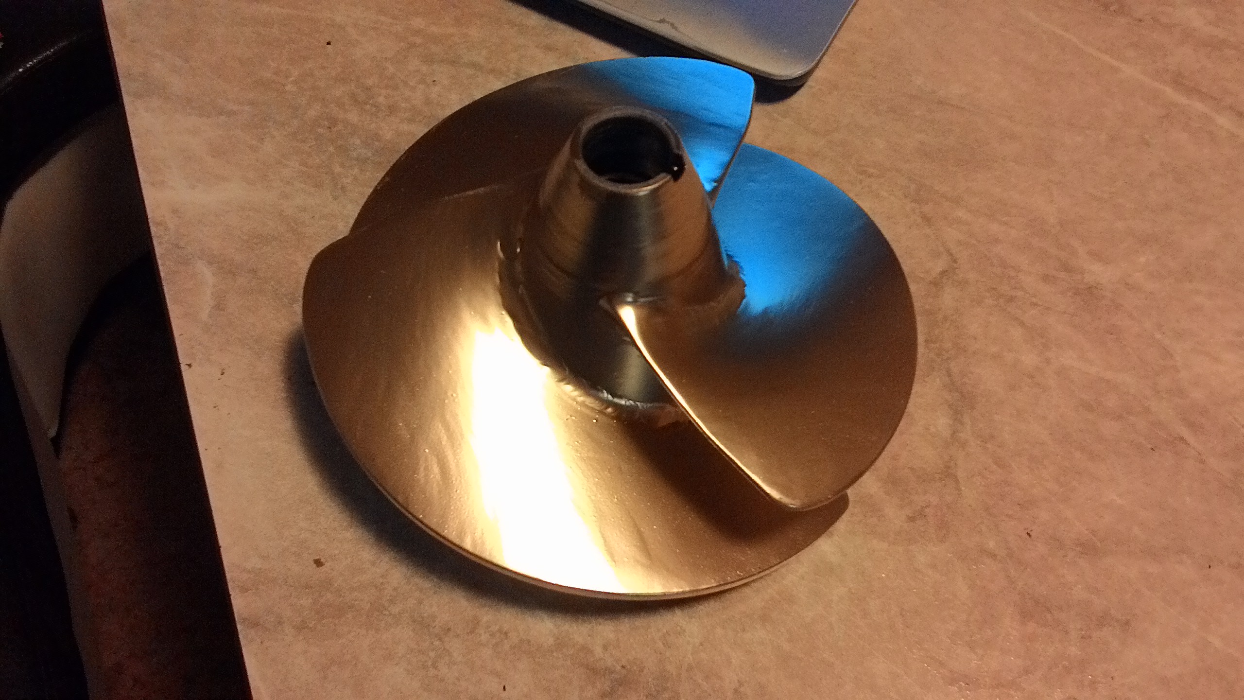 Ну, вот, провожу я значит эксперименты по шагу шестилопастного винта кнаапы, нового; магазинного. После его испытаний и недостижению оборотов 21083 до моих "мечтательных" , я , полный энтузиазма, решаю немого, скрупулёзно - подогнуть шестилопастной винт, магазинный , ещё СССР! Думаю: сейчас возьму кувалдочку , поеду к аргонщикам и вместе - подогнём винт. На 6-ти лопастной винт у меня не было горки.