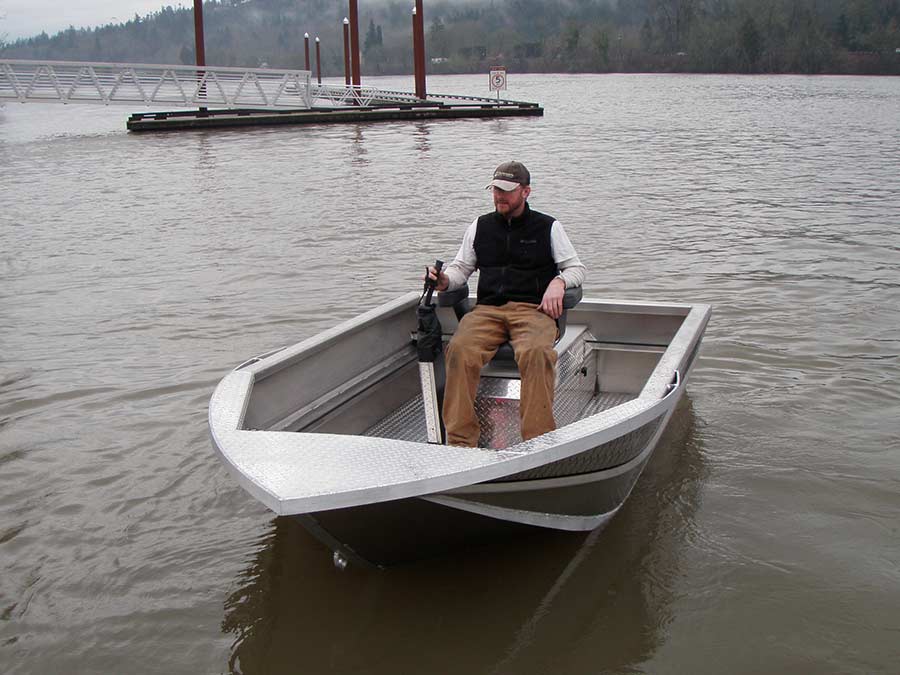 Конструкция решетки проста и на мой взгляд не эффективна, просто лист дюраля с отфрезерованными отверстиями, так что ламели этой решетки получились квадратного сечения, один плюс - изготовить очень просто и дешево. Второй вопрос, который меня мучил с самого начала - зачем обрезали корму?... Для меня сйчас очевидно - чтобы обеспечить нормальный подхват воды. Еще при этом управление становится безопасным, как не закладывай руль (он же газ, как у мотоцикла) лодку не возможно опрокинуть. Можно и встать, если волны нет.