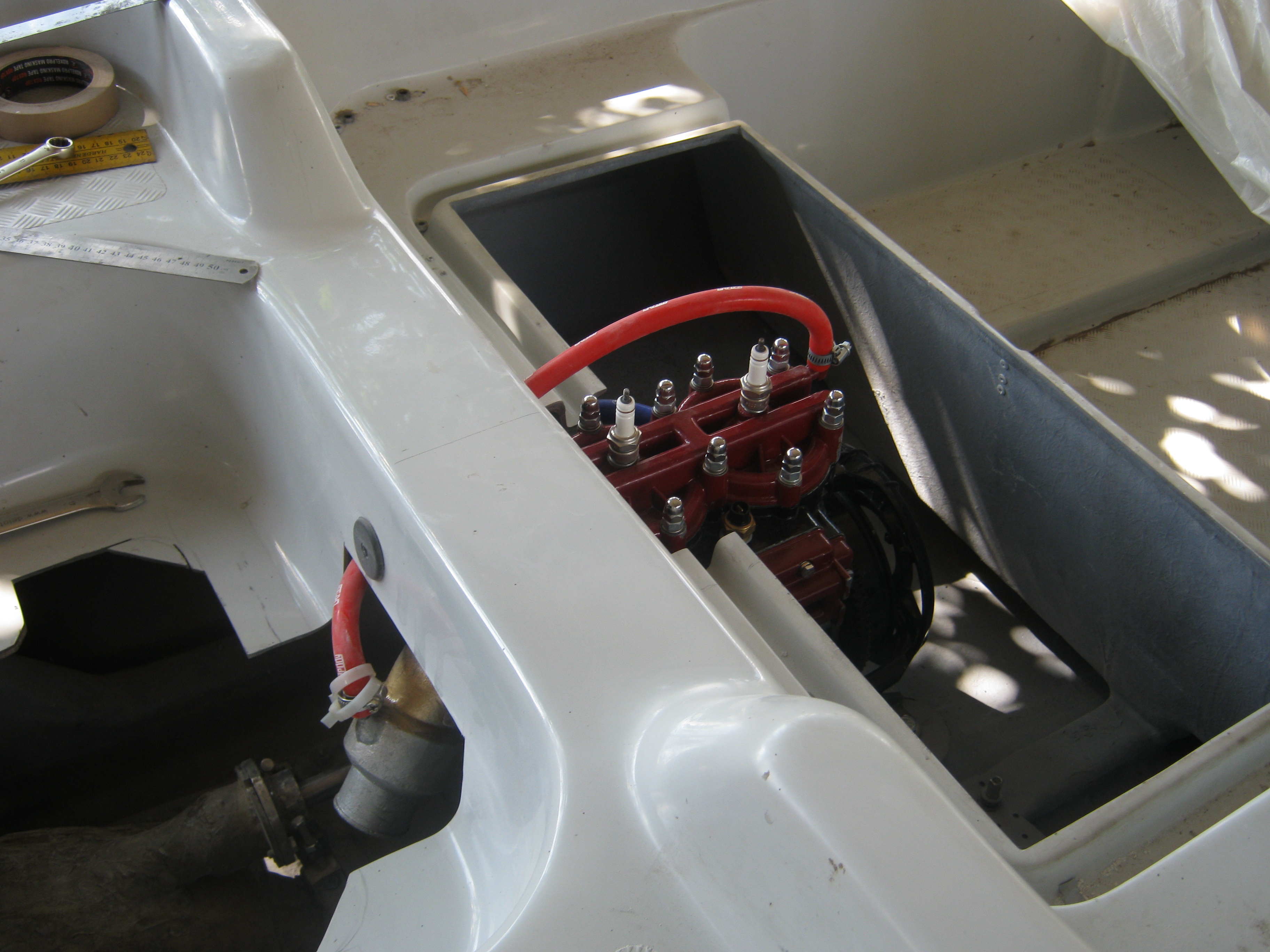 Как я и предполагал, восьмёрочное зажигание -не умещается и необходимо делать отверстие для выхода крышки трамблёра
