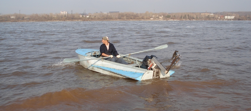 Сначало окуел от непоняток и страха, руки первое время треслись как вибратор :) , как видно я испытывал сей болотоход ниже КАМГЭСа, течение и волна немаленькая, травки-муравки не было, пока понял что к чему, воды в лодке от захлёстываний волной прибавилось немало :shock:
