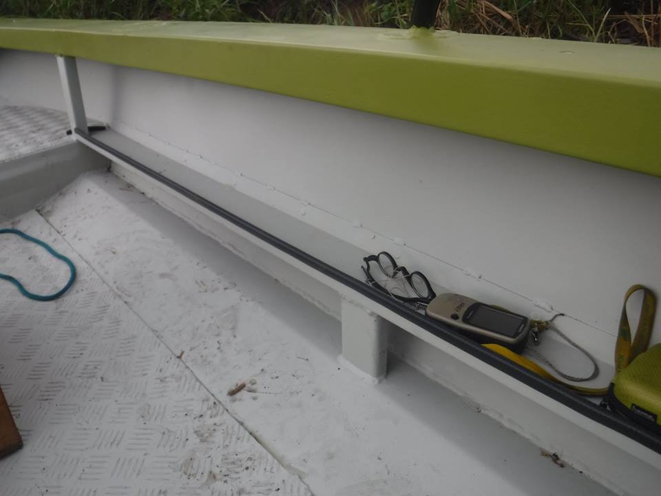 Мелочёвку удобно держать - по борту. Зимой когда будет "чесотка в руках" - можно сделать из прозрачного поликарбоната много всяких рундучков, ничего не валяется и ГЛАВНОЕ - все видно где что лежит, в отличие от глухих, сырых рундуков в днище. ;)