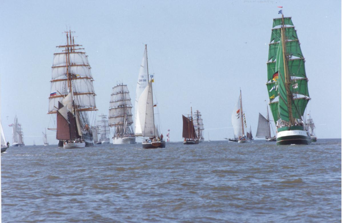 Гоняются парами, дистанция примерно 300 м, чтобы зрителям на пирсе было.