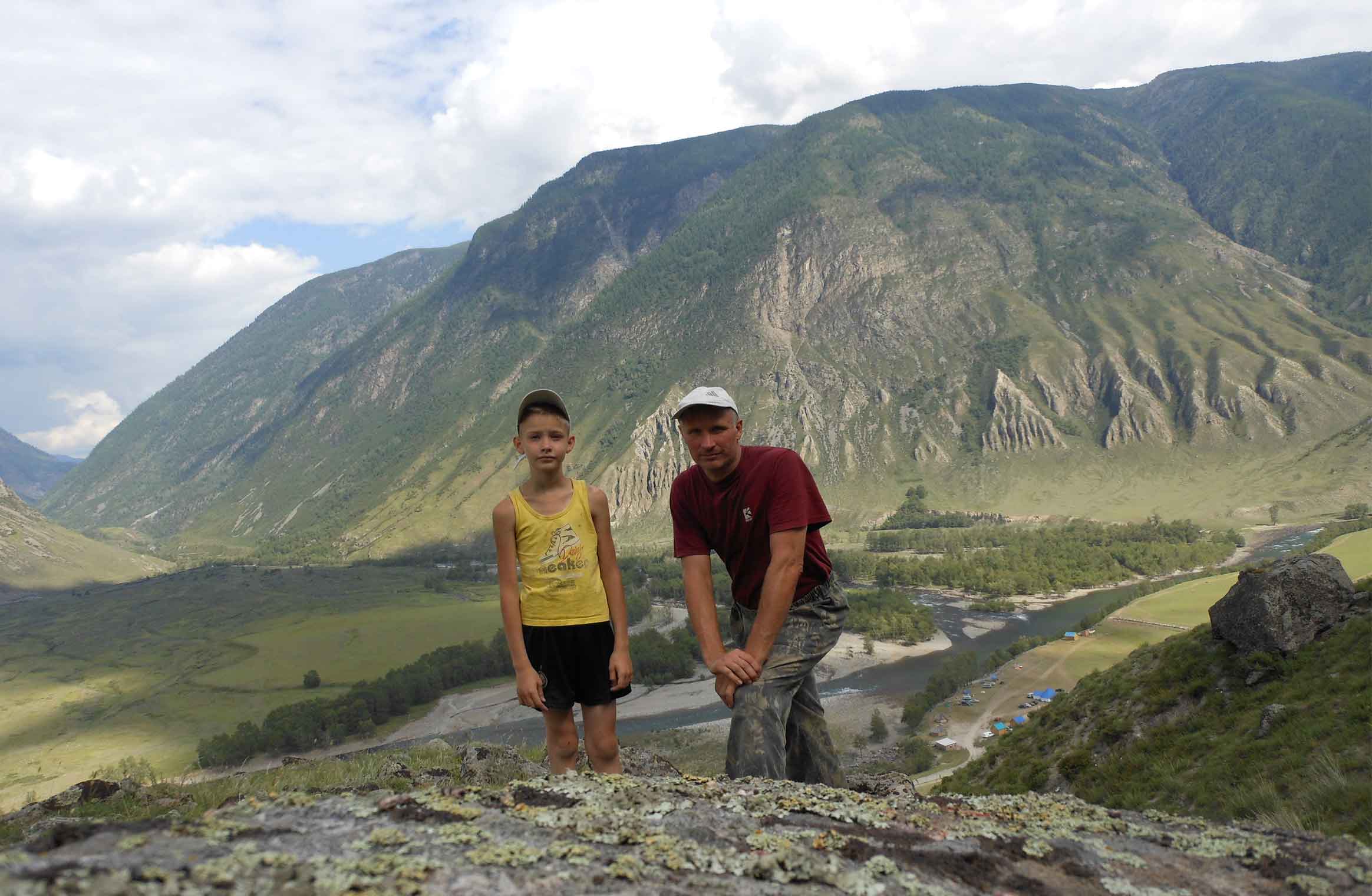 На следующий день на великах поехали вверх вдоль Чулышмана в сторону перевала Кату-Ярык. Дорога поганенькая - почти сплошная "стиралка",до перевала недотянули примерно 4 км. ,понял что засветло не уложимся,решил вернуться. В итоге всё равно более 40 км. за день намотали. Сын - молодец! не сдался ,хотя сил уже не было , и падал и в горку мне приходилось оба велика закатывать. С непревычки тяжко было ,понял зачем жопа нужна - что-бы болела :lol: Последние несколько км ехал стоя ,сидеть уже не мог.. Но просмотрели речку , пофотографировали , интересная вылазка получилась!