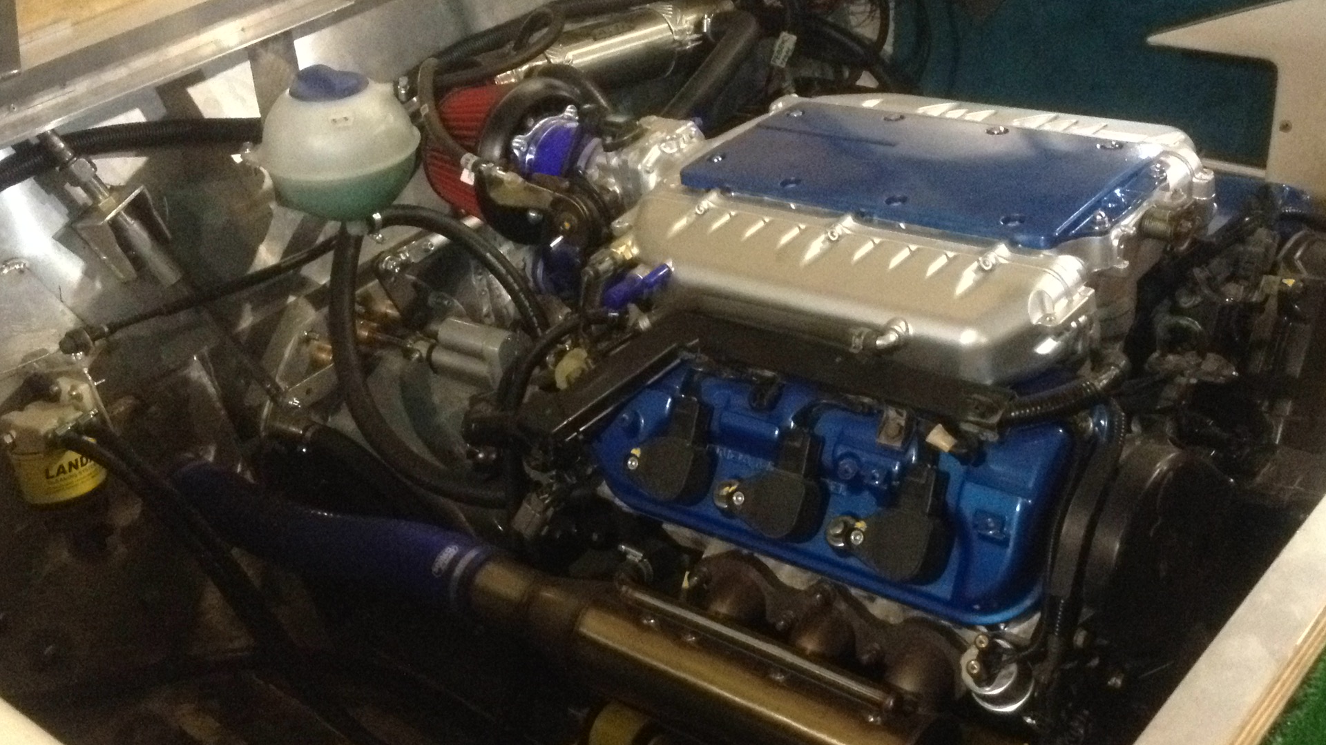 Так выглядит установленный комплект в моторном отсеке катера.