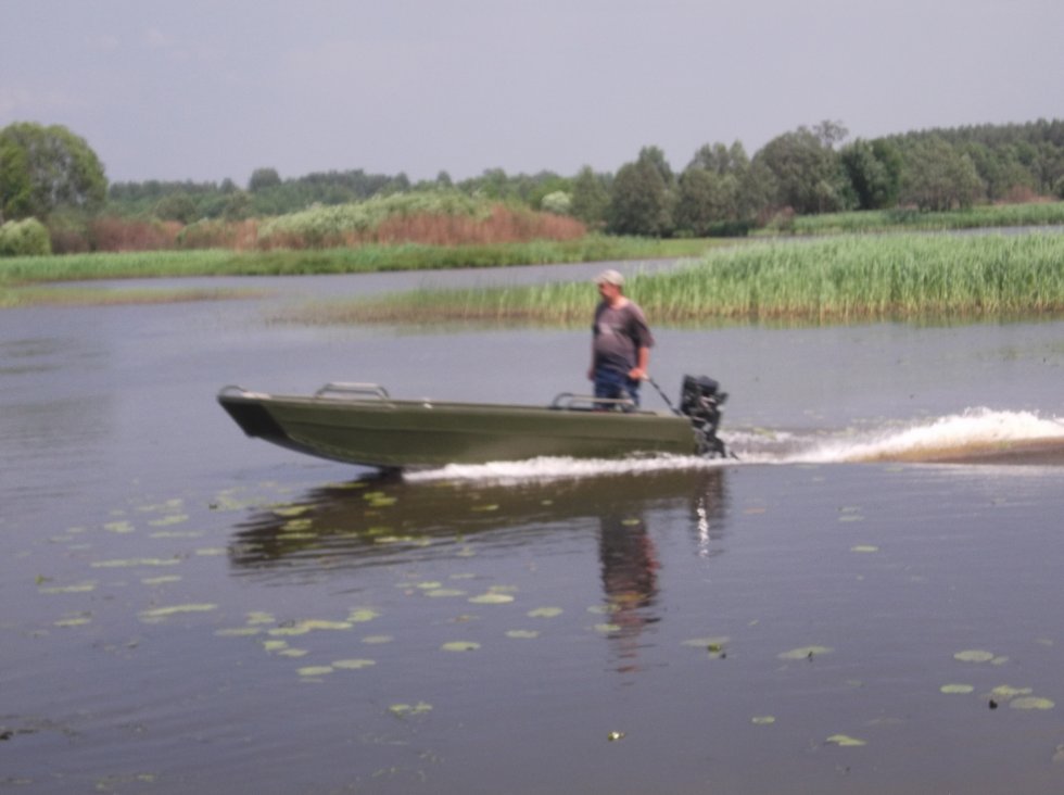 Лодка обкатана под разными моторами , с винтовой антикварной Ямахой-25 (1977г) бежит около 50 км час.