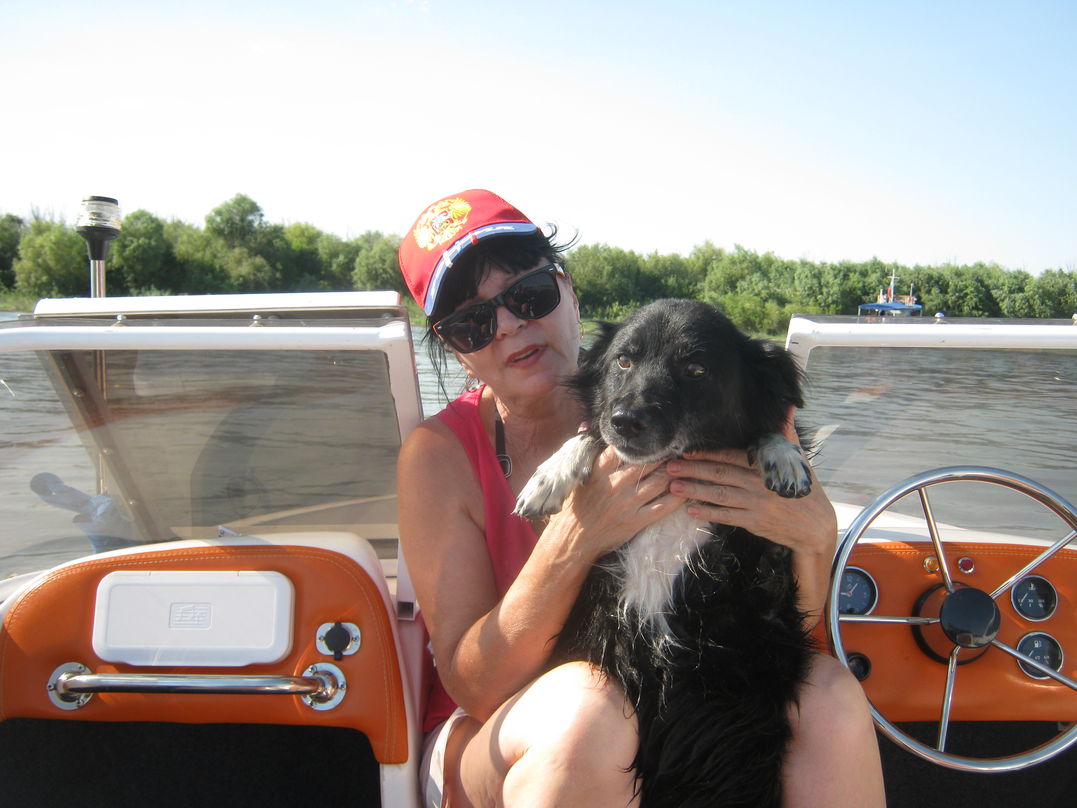Здесь ещё одно событие произошло. Из-за дебаркадера , по течению- выплыла на стрежень - надувнушка. В ней сидели гордые , видимо муж и жена. Без мотора, муж -грёб. Жена , раскинувшись на задней банке - делала счастливое лицо.