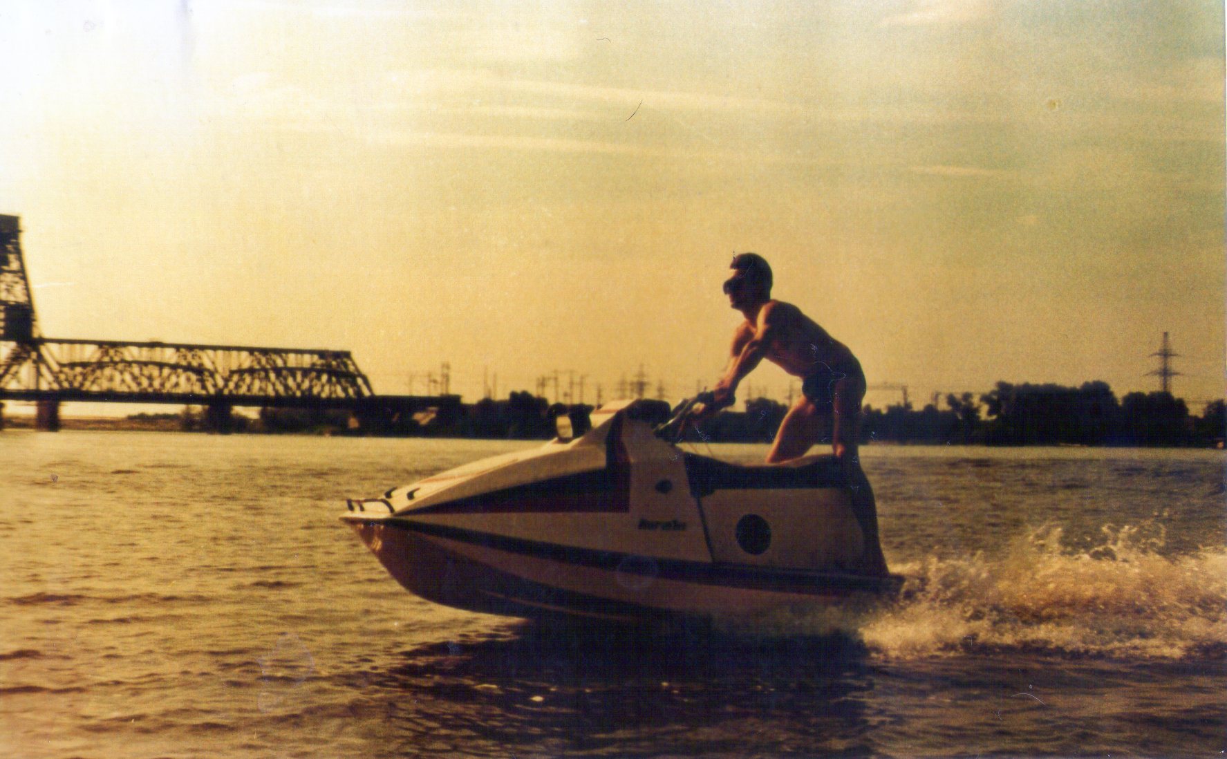 Катались мы на самодельной гидрофанере в районе дикого отдыха отдыхающих . В сторонке. Семьями. Трезвые. Какая-то ещё парочка прислюнилась к этому месту. И, вот в тот момент, когда мой дружок(кудесник по материалу- фанера)(делал корпус этого гидрика)(1993 год) полетел в сторону от берега, парень -сосед вошёл в воду(несколько в стороне) и нырнул! Оказалось, что он хотел изобразить Ихтиандра и рулил там под водой, выискивая жемчужины. Несколько секунд.