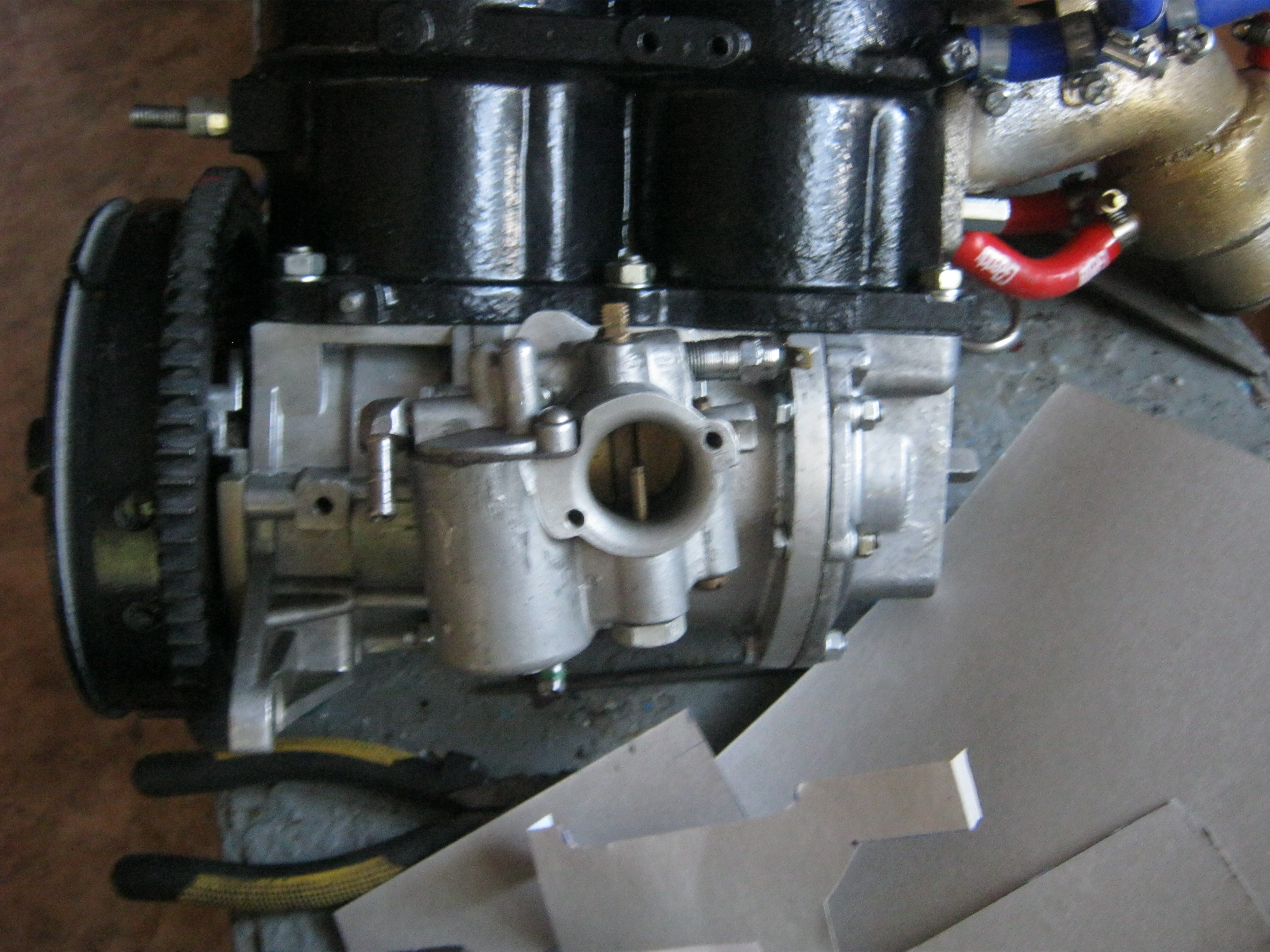 Ещё там фото "карба" висящего на картере -в рабочем положении. ПОД УГЛОМ!