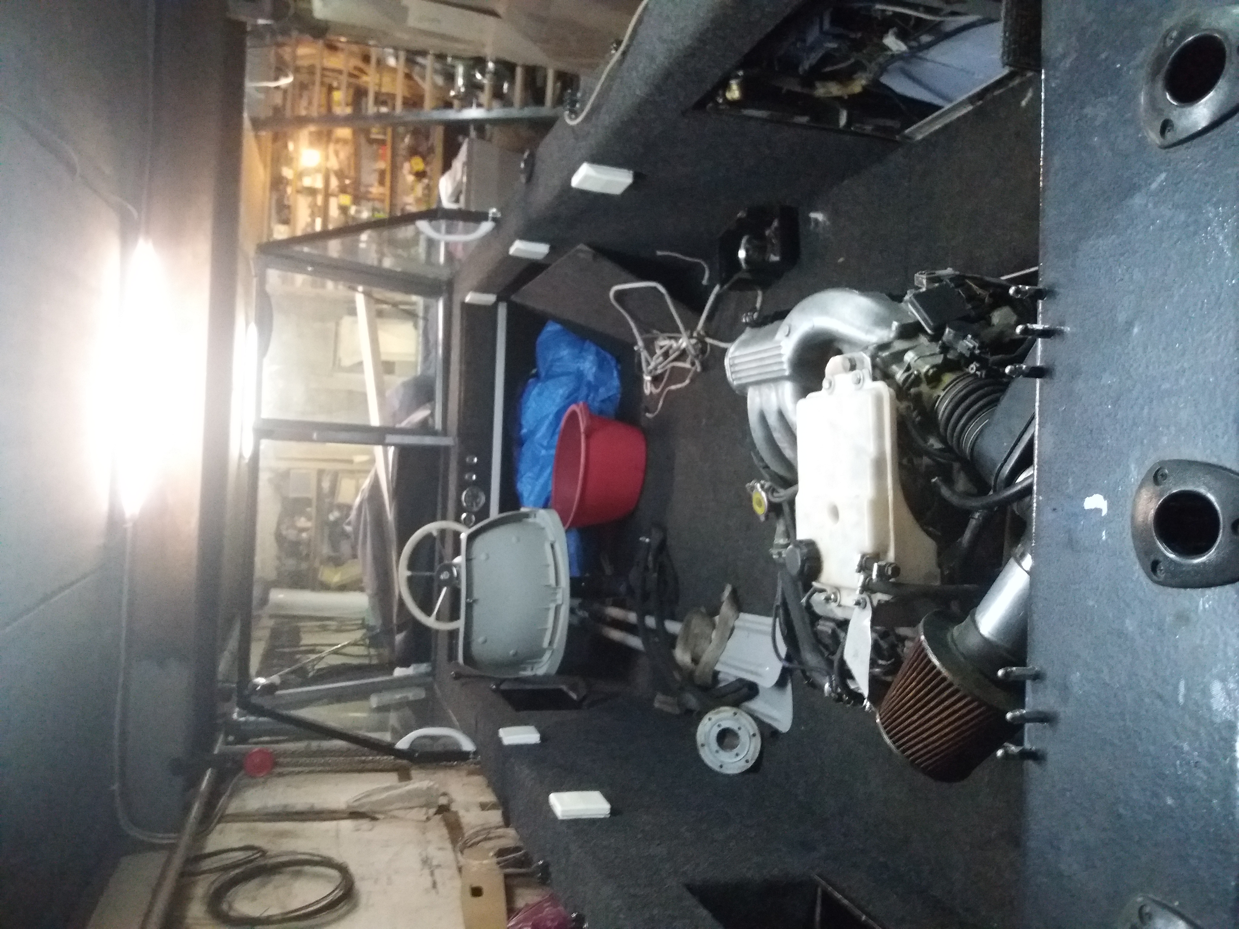 Сейчас , всё ищу -Синее, под цвет тюнинга последнего водомётика. Вот в середине будет, вот здесь- быстросьёмный коврик, синего цвета. На, кринолин -нашёл тоже. Руль -тоже синий.
