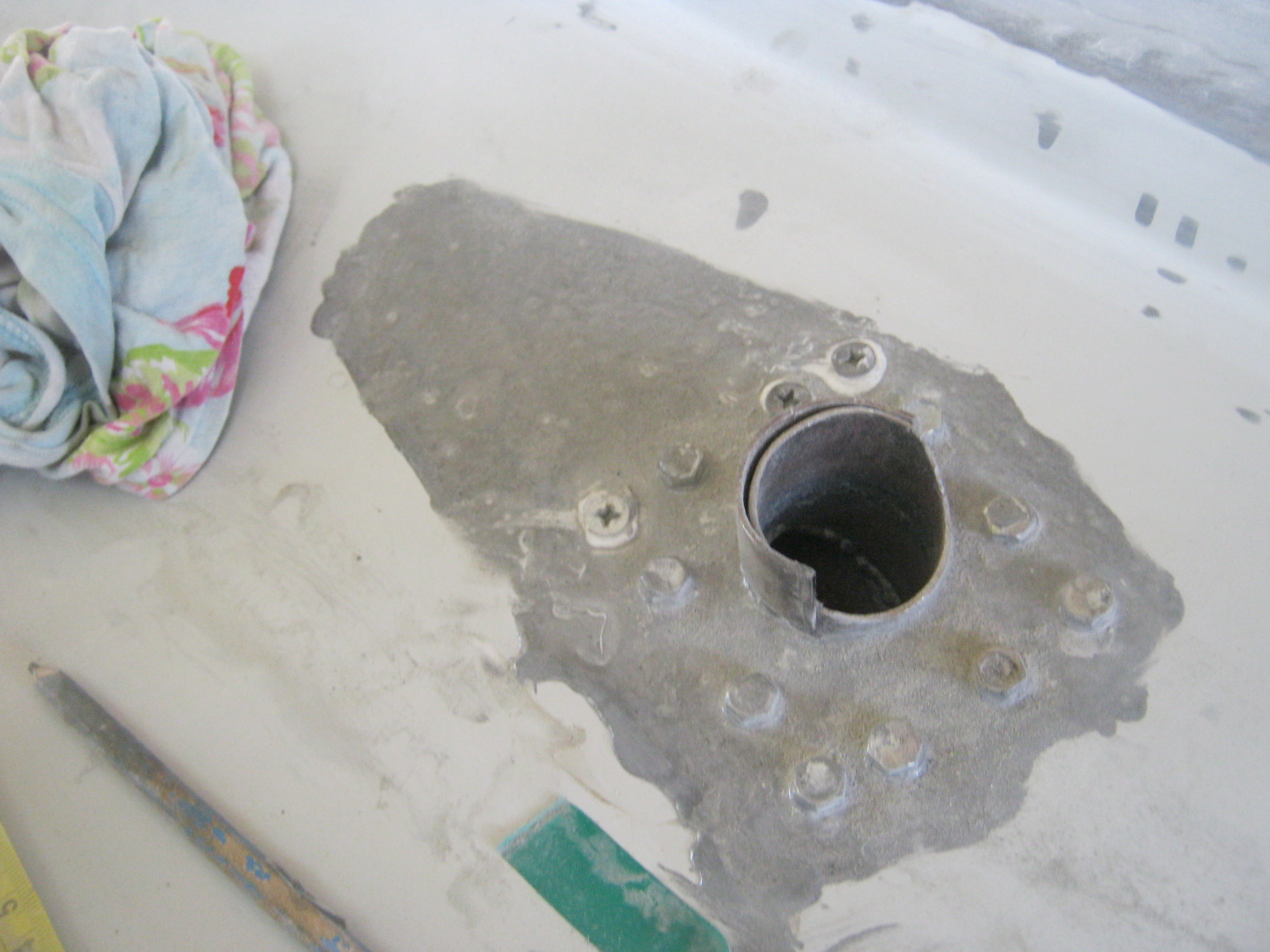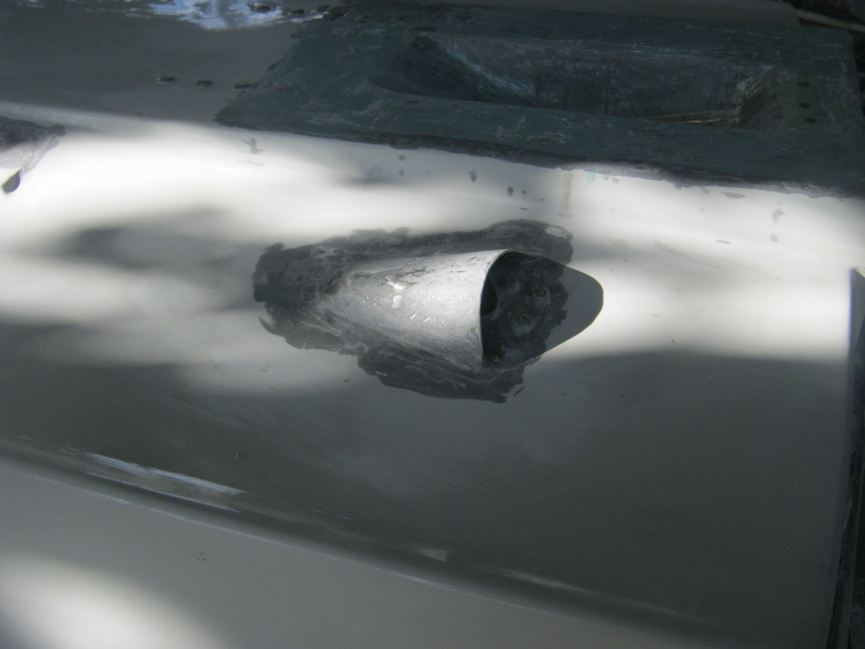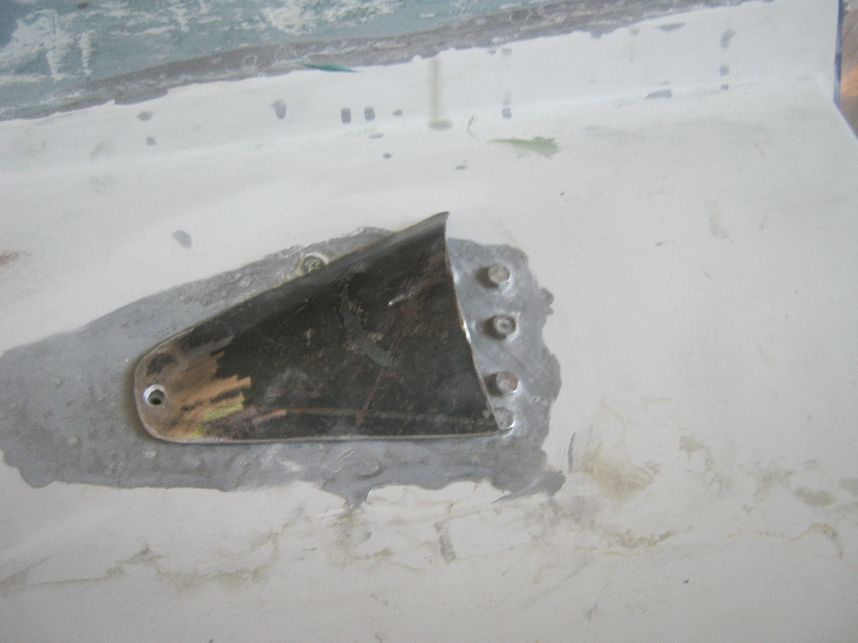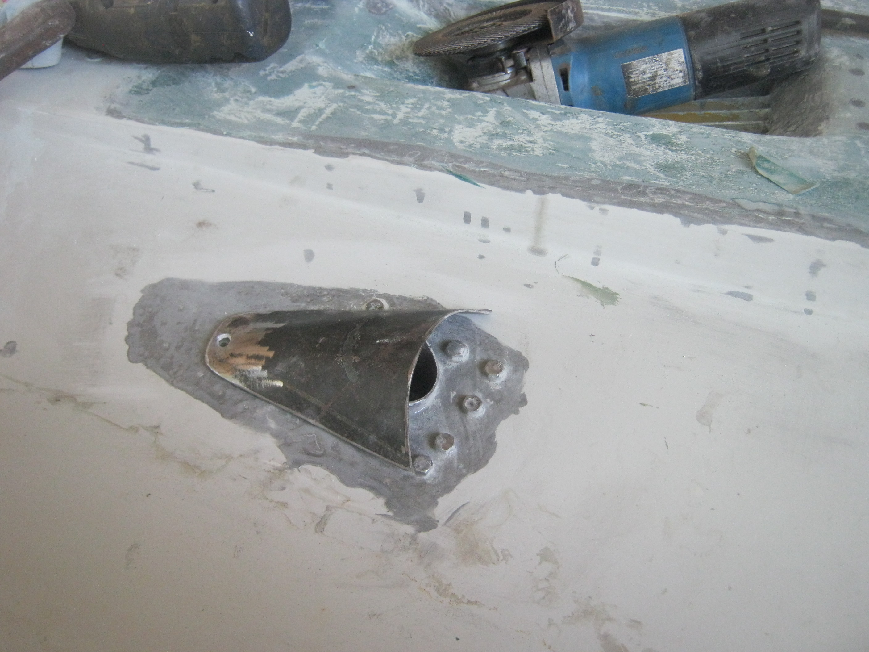 Я его ещё выпрямил шпатлёвкой. Превратил : Почти "транцевую" плиту на транце - в Почти -Отгиб днища!
