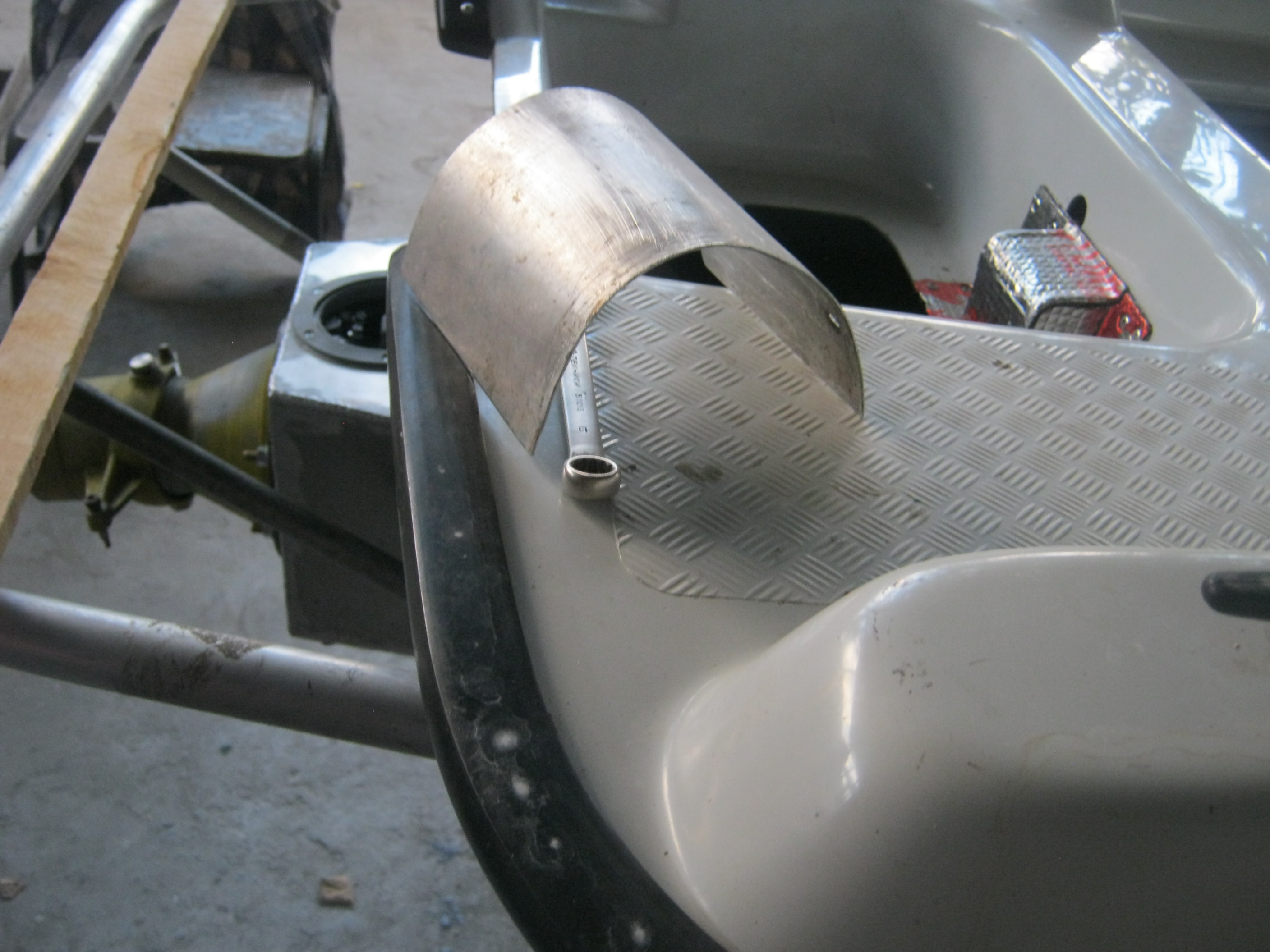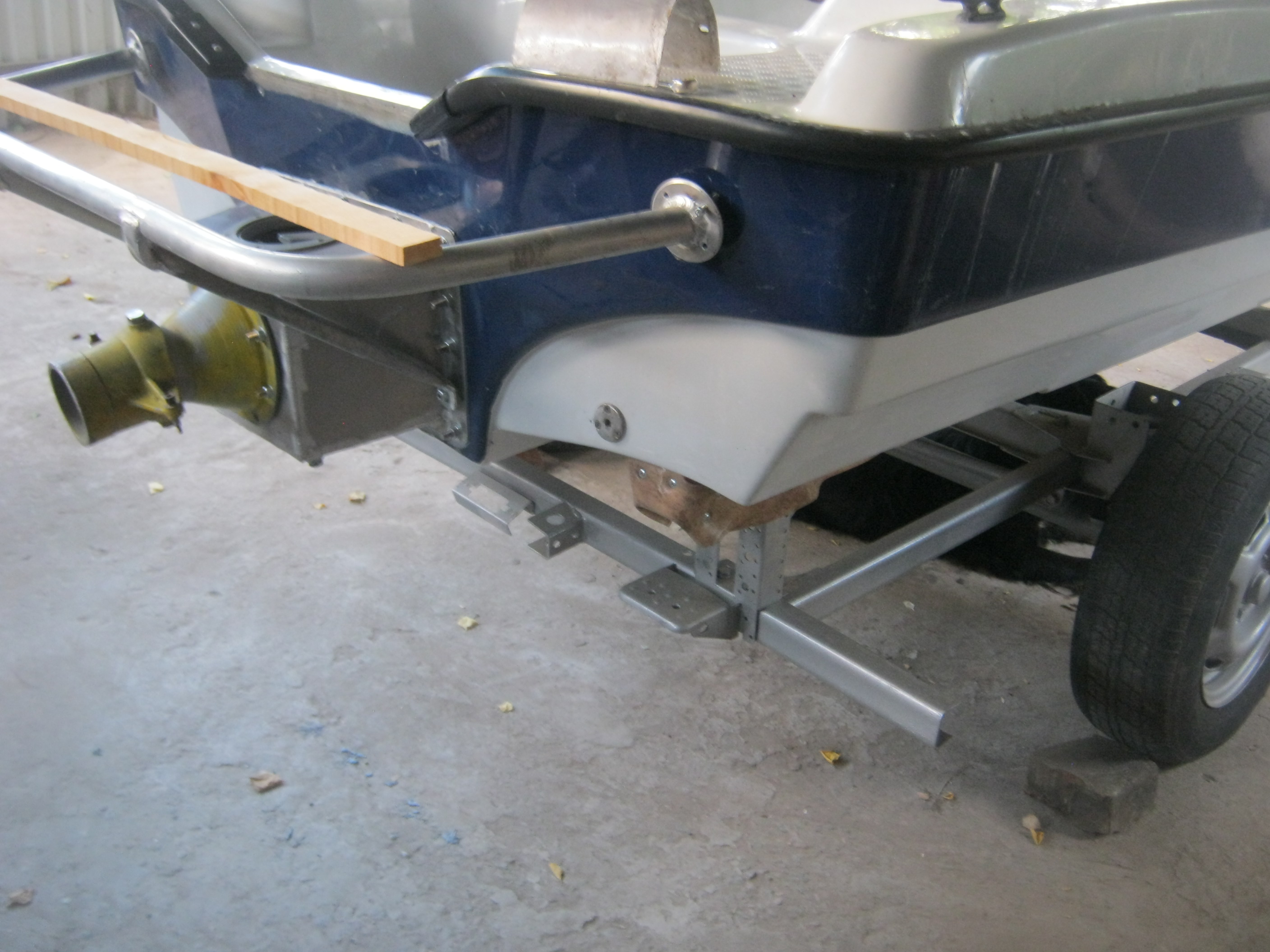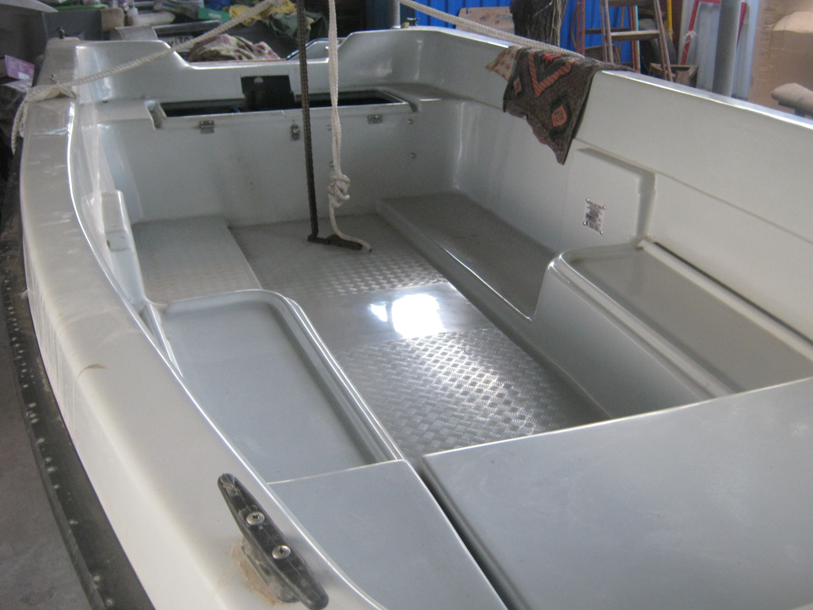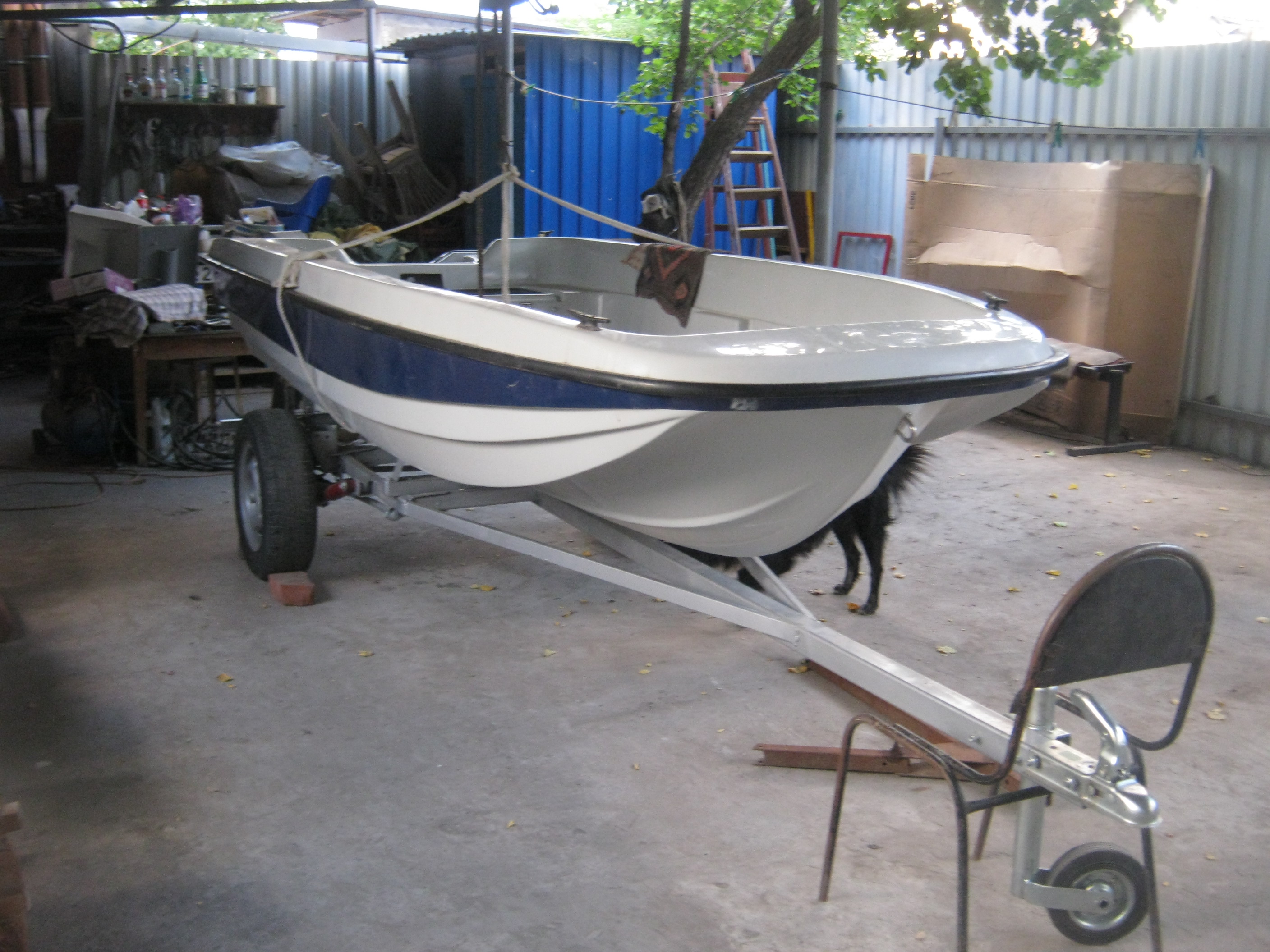 Дно сделал. Перевернул. Задняя платформа. Думаю, чем закрыть. На корме лежит заготовка под черпак ЗХ. Мотор готов к установке.