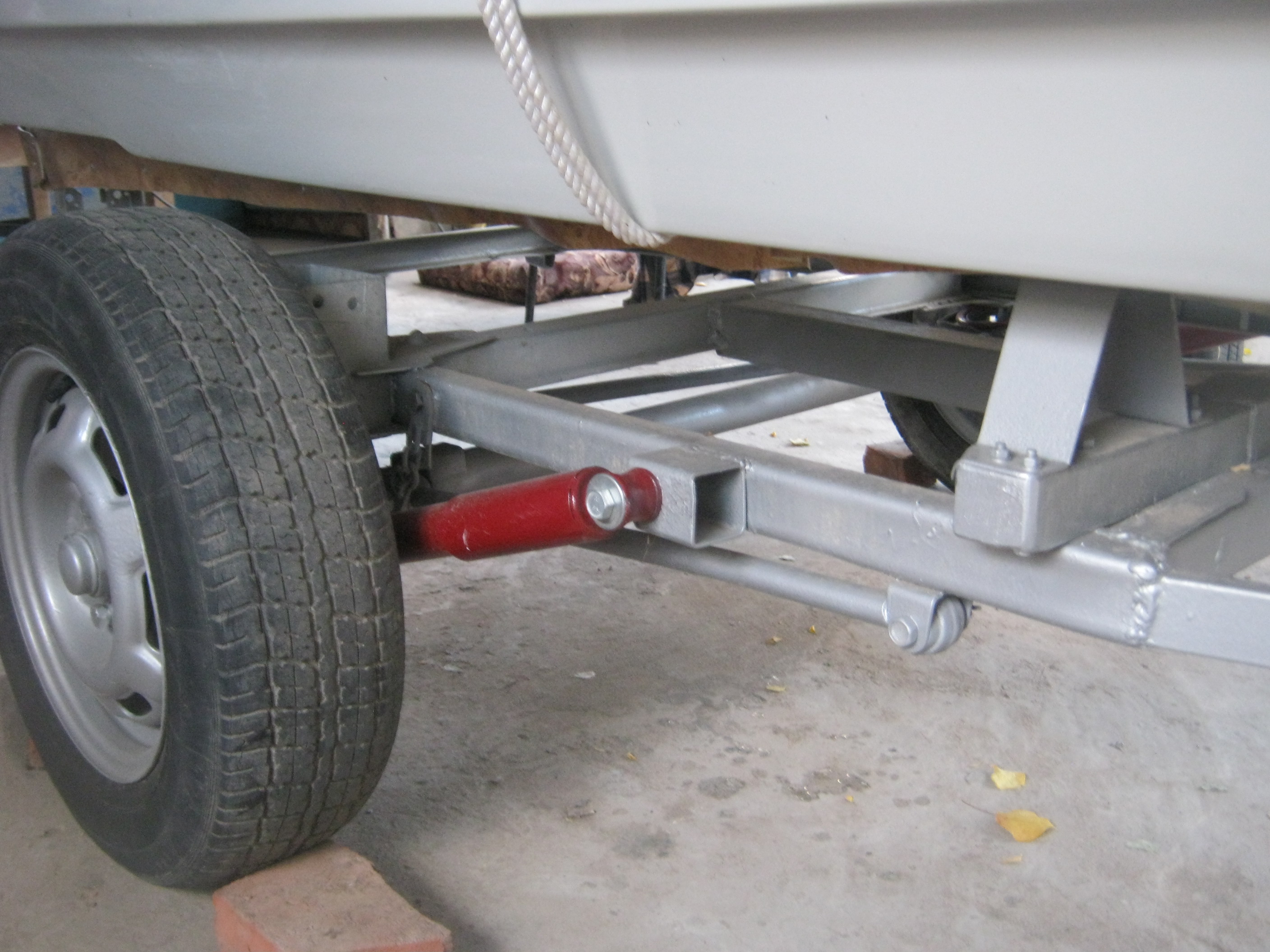 Стоит на прицепе. Собака охраняет.