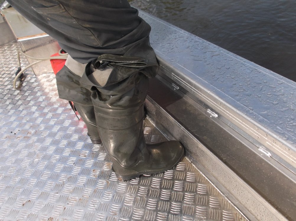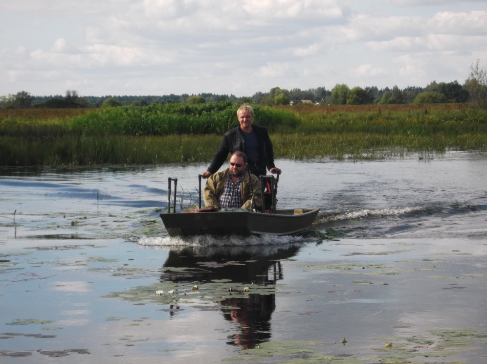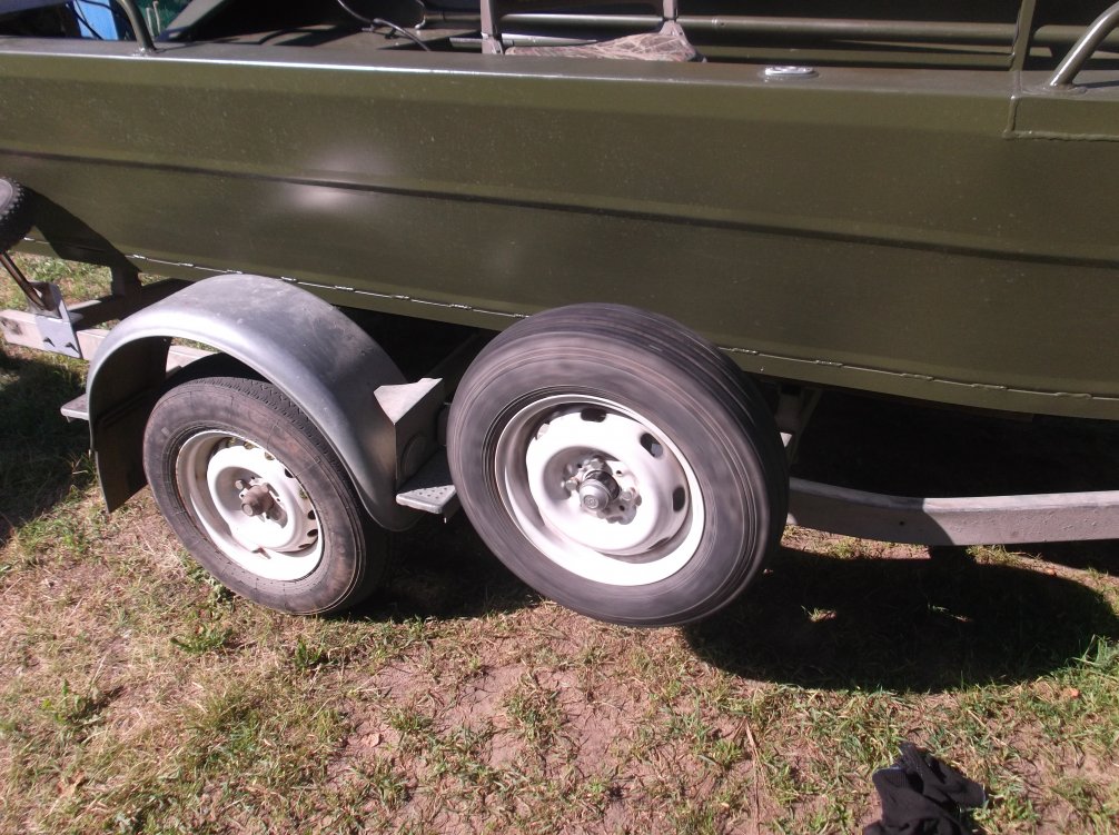 Если берег стрёмный, и машина может утонуть, прицеп закатывается вниз в воду руками, лодка грузится, и машина на "штертике" вытаскивает лодку на прицепе на сухое место. Штатное колесо прицепа - для этого не годится, оно зароется и отломится.