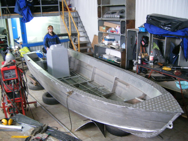 Будучи на верфи в Питере, случайно наткнулся, мне понравился - правильная рыболовная лодка для короткой волны, которой не нужен мощный мотор, потому как считаю - правильная лодка хорошо ездит и с небольшим мотором, а с огромным Маторищем . поедет и фрагмент бетонного забора.