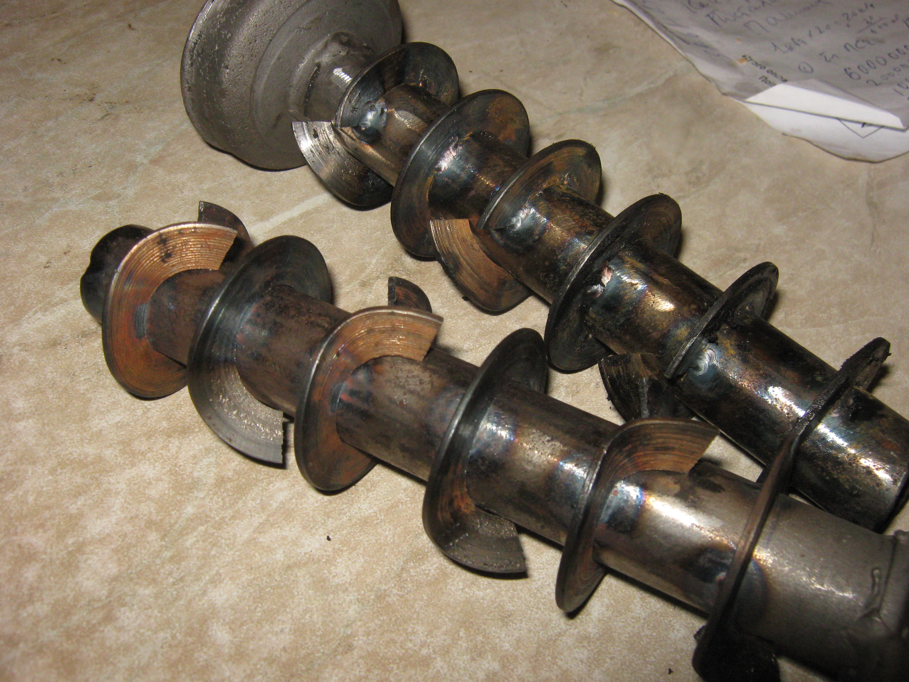 Вот на этих фотках показано -как "реставрировать" убитый глушитель к 634. Яве. Их концевые части. Вот видно, как я применил перегородочки- похожие на шнеки, разрезал их и развернул в Разные стороны -без изменения проходного сечения.