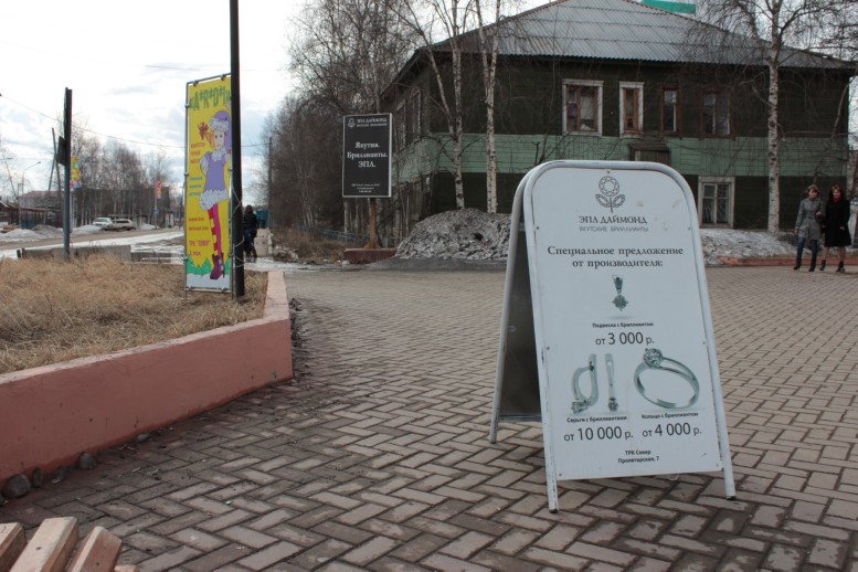 Следующие несколько фотографий будут посвящены городу Мирный, расположенному в 230 км на север от Ленска. Мирный это столица алмазодобывающего региона, или как его тут называют "столица алмазного края". Город существует исключительно за счет алмазодобычи. Из действующих тут приедприятий и организаций - 80% структурные подразделения Алросы, 10% муниципальные учреждения, 10% частные организации (в основном сфера торговли, бытовых услуг). Цифры конечно приблизительные, на вскидку. Если ошибаюсь то не сильно.